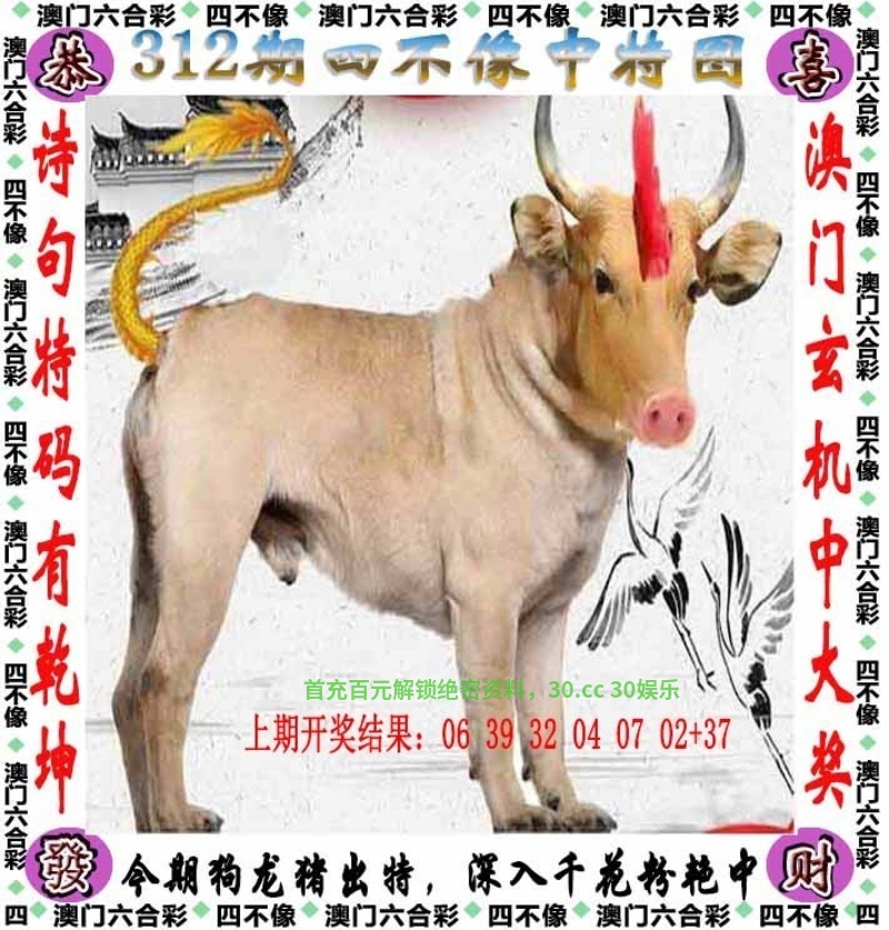 312期:今期狗龙猪出特,深入千花粉艳中 ①解:今期狗龙猪出特,解凶丑生肖鼠牛虎猴狗猪,深入千花粉艳中,解阴肖鼠龙蛇马狗猪 ②本期取肖:羊蛇鼠龙牛虎 本人取特都是有思路可寻,对错看天意,喷狗绕道 |